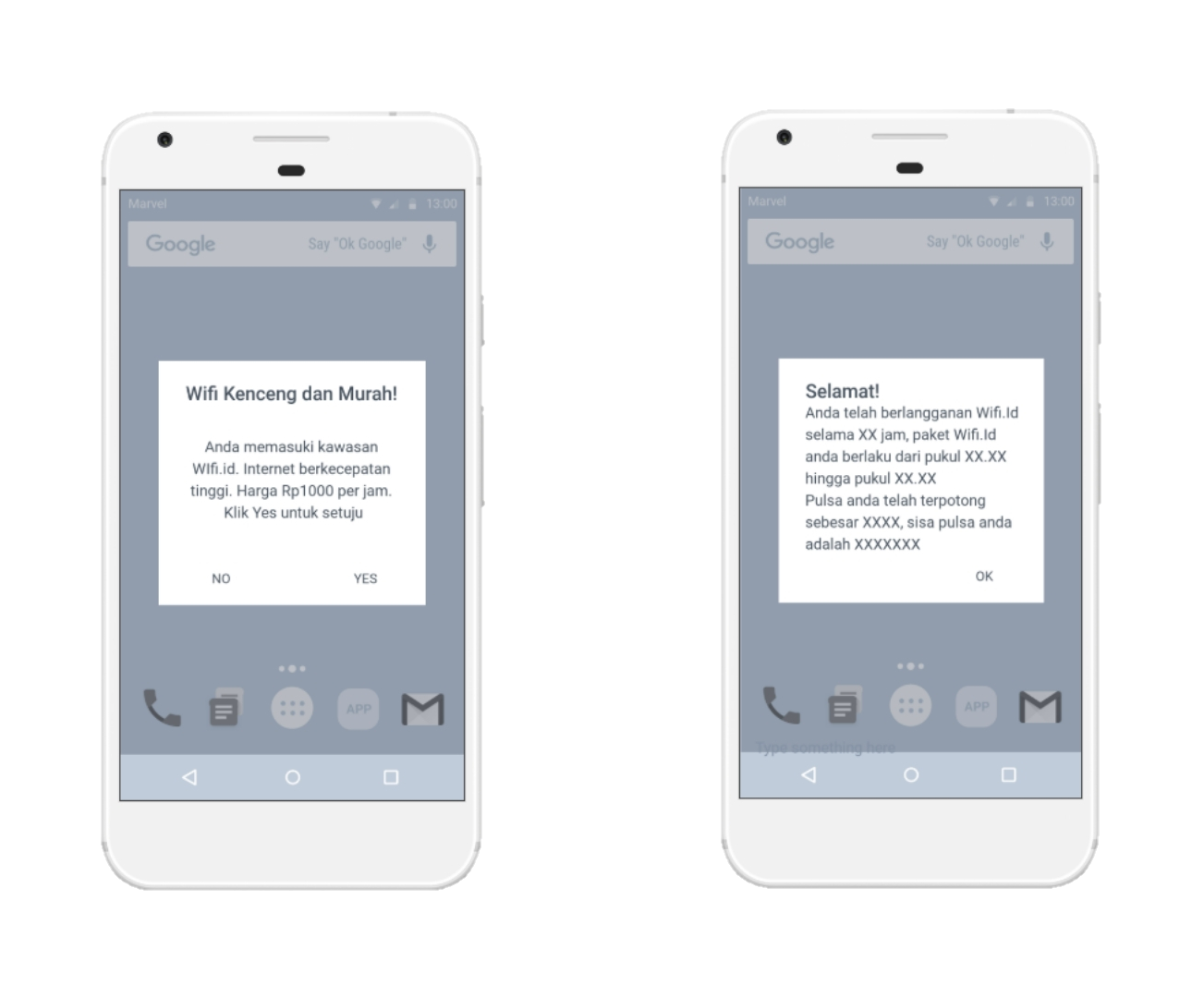 We want to simplify Wifi.id registration process, promote Wifi.id usage, and monetize Telkom access point. By synchronizing Wifi.id and Telkomsel devices using Flash message feature i.e. LBS (location based service) to specific users smartphone. Hence, WiUs! is a perfect solution to cover all Wifi.id issues